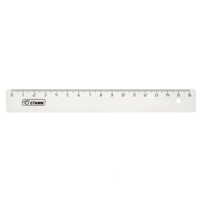 Линейка СТАММ – отличный помощник для создания ровных линий. Размер товара – 16 см, ширина – 20 мм. Изделие имеет безопасные закруглённые края и чёткую контрастную миллиметровую шкалу. Товар обладает гладкой глянцевой поверхностью.