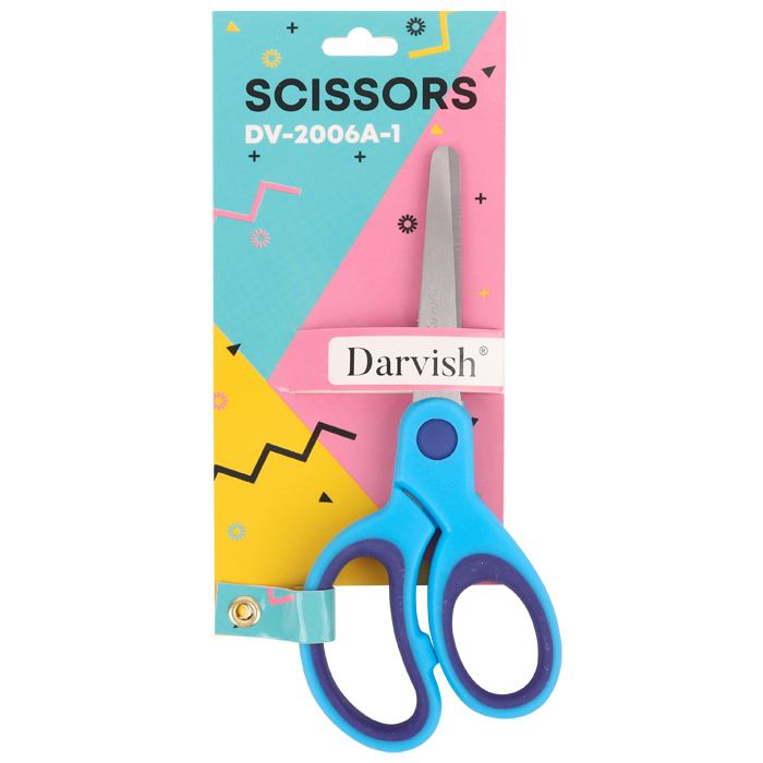 Ножницы 14см закругленные лезвия с европодвесом ручки голубые