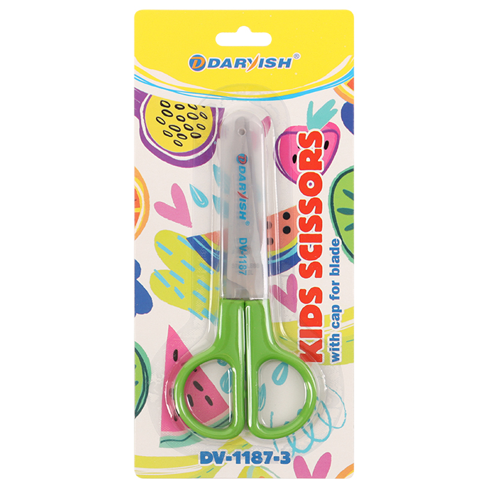 Ножницы 12см детские с европодвесом с пластик. колпачком салатовые