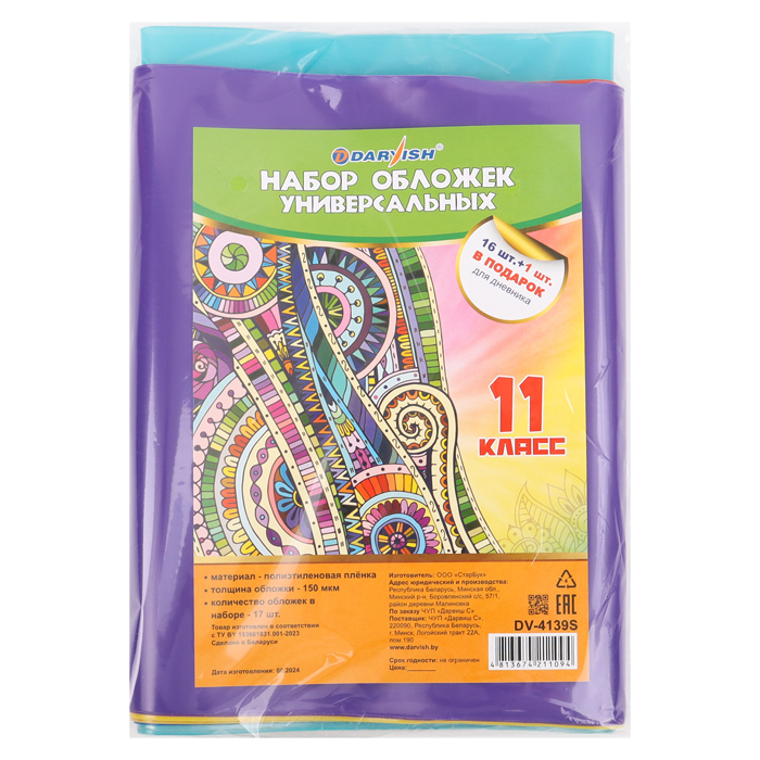 Набор обложек 11 класс "Darvish" (17шт/уп) 150мкм (в комплекте обложка для дневника) РБ