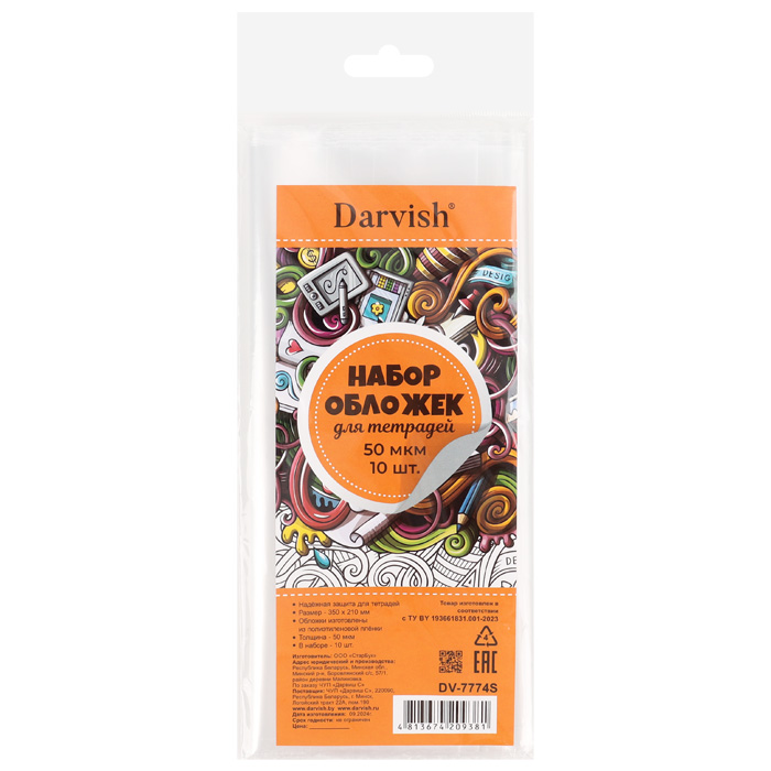 Набор обложек для тетрадей 50мкм (10шт/уп) полиэтилен, размер 350*210 мм "Darvish" РБ