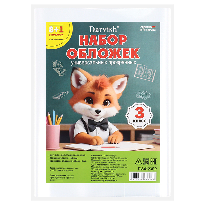 Набор обложек 3 класс "Darvish" (9шт/уп) 150мкм (в комплекте обложка для дневника) Прозрачные РБ