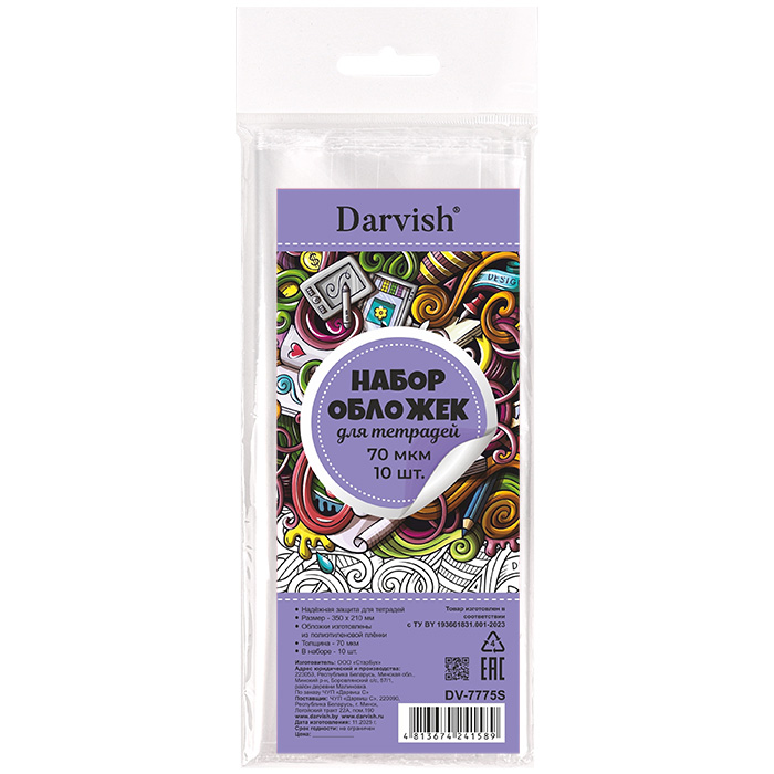 Набор обложек для тетрадей 70мкм (10шт/уп) полиэтилен, размер 350*210 мм "Darvish" РБ