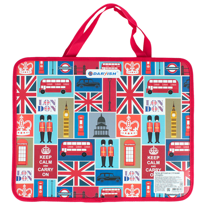 Папка детская с ручками А4 пласт. с рисунком на молнии Лондон