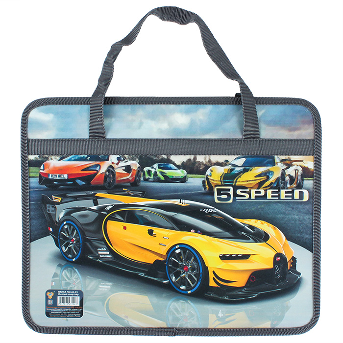 Папка детская с ручками А4 пласт. с рисунком на молнии Жёлтый спорткар