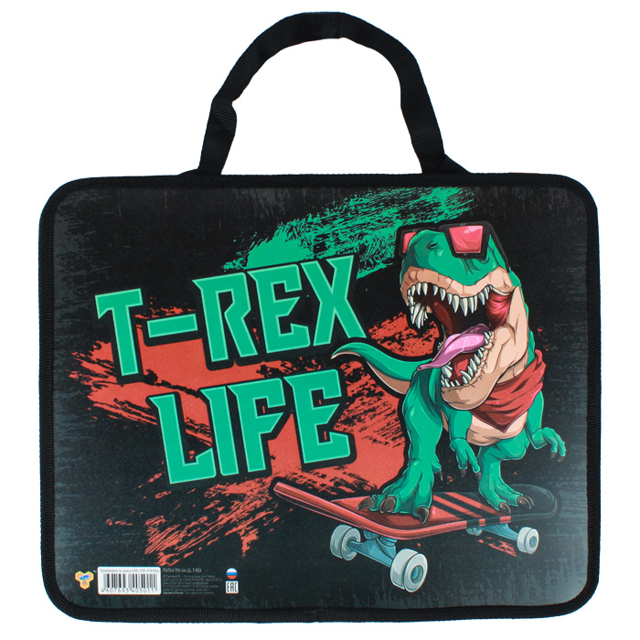 Папка детская с ручками А4 пласт. с рисунком на молнии T-Rex