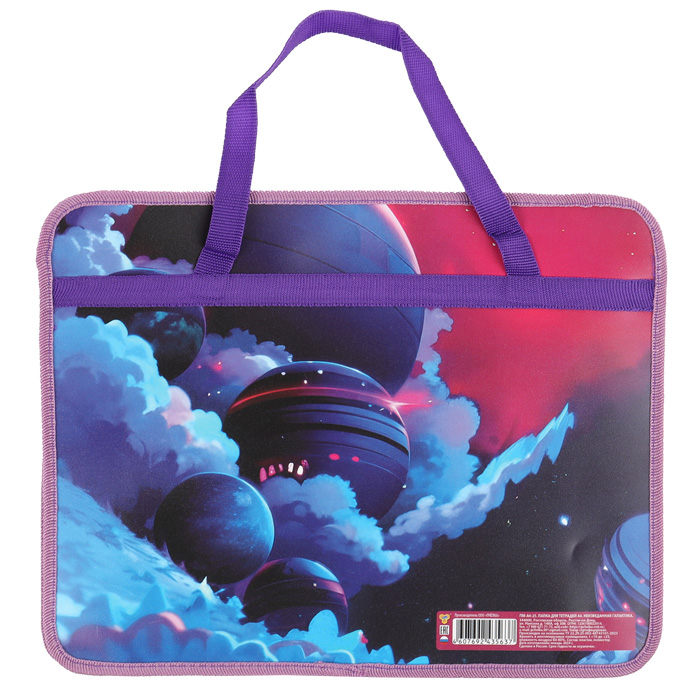 Папка детская с ручками А4 пласт. с рисунком на молнии Неизведанная галактика