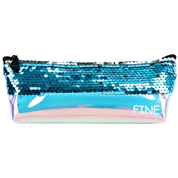 Пенал изготовлен из материала с "бензиновыми" разводами и реверсивных пайеток. Размер пенала 22*7,5*3,5 см.
