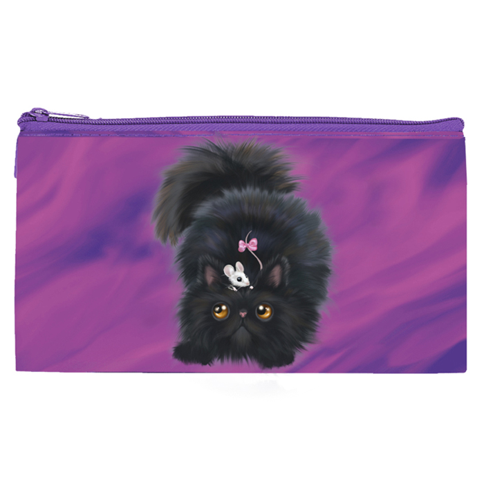 Пенал 20,5*10,8см Чёрный кот на молнии