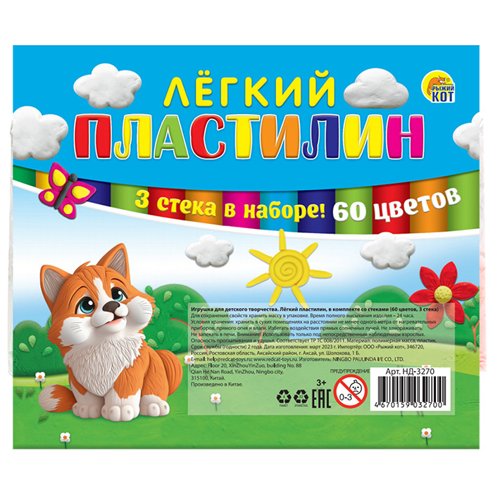 Легкий пластилин создан специально для детских пальчиков, поэтому он легко поддается лепке. Его особенность заключается в том, что после высыхания масса полностью застывает и сохраняет форму фигурки. Такой пластилин не пачкает одежду, руки и мебель, не крошится и не тонет в воде! Цвета можно смешивать между собой и создавать новые оттенки. Лепка из воздушного пластилина развивает мелкую моторику рук, координацию, фантазию и воображение. В наборе: 60 цветов, 3 стека. Упаковка: пакет.