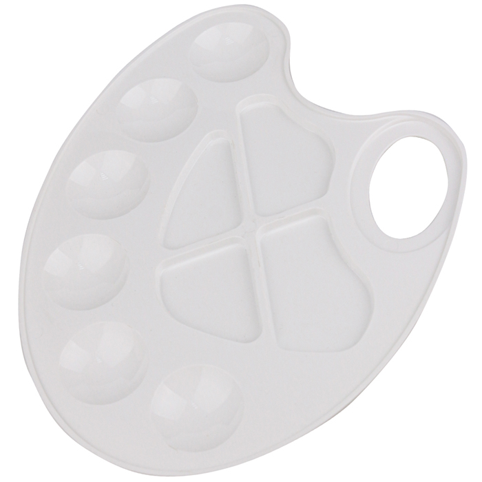 Белая палитра предназначена для смешивания красок и получения новых тонов при рисовании. Гладкая глянцевая поверхность легко отмывается после использования. Материал: пластик.
