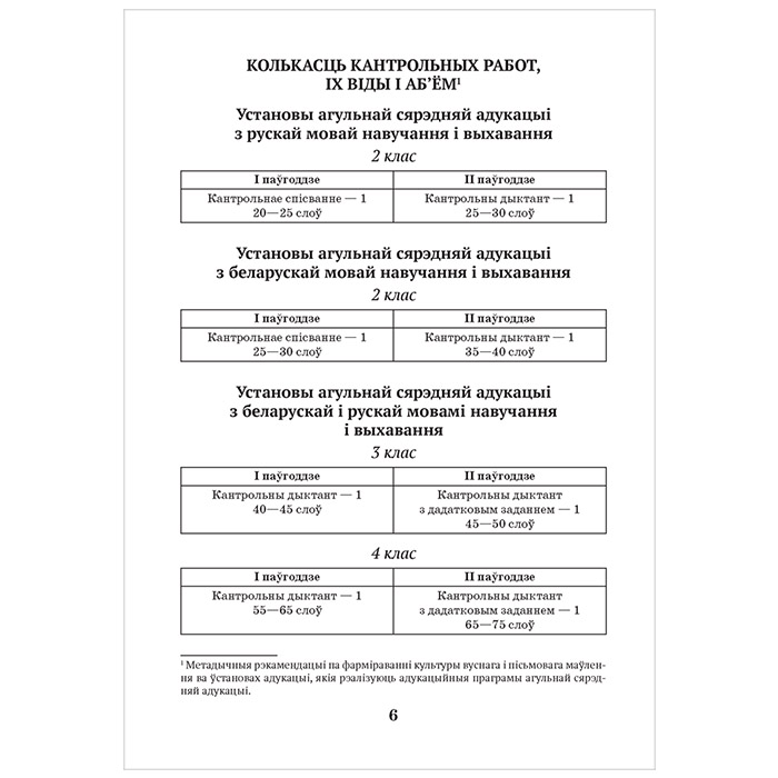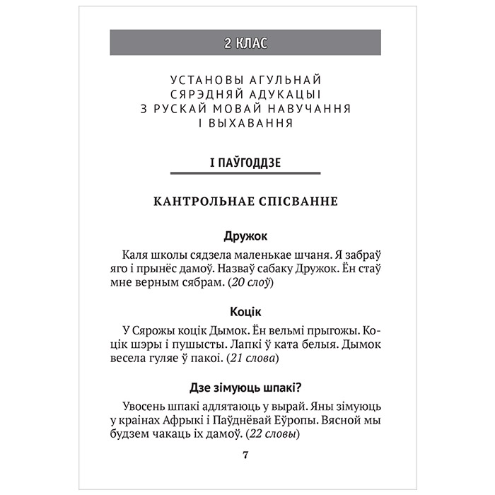 Дапаможнік уяўляе сабой зборнік тэкстаў пісьмовых кантрольных работ (кантрольнае спісванне, кантрольны дыктант, кантрольны дыктант з дадатковым заданнем), якія структураваны па класах з улікам мовы навучання. Тэксты могуць выкарыстоўвацца як на ўроках беларускай мовы, так і на дадатковых занятках у пазаўрочны час.