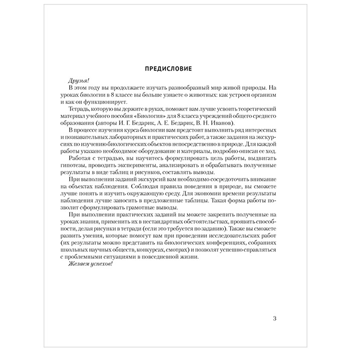 Тетрадь подготовлена в соответствии с программой и учебным пособием по биологии для 8 класса. В ней приведены лабораторные и практические работы, демонстрационный опыт, экскурсии, предусмотренные учебной программой. Использование тетради (как на уроках, так и дома) будет способствовать систематизации знаний и освобождению времени для выполнения творческих заданий.