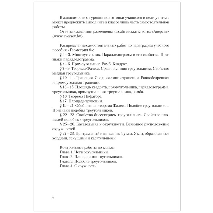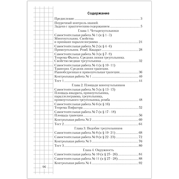 В пособии приведены дидактические материалы по геометрии для 8 класса, содержание которых отвечает требованиям действующей учебной программы, структуре учебного пособия «Геометрия 8» (автор В. В. Казаков) и календарно-тематическому планированию. В издание включены самостоятельные и контрольные работы, тематические тесты, задачи с практическим содержанием.