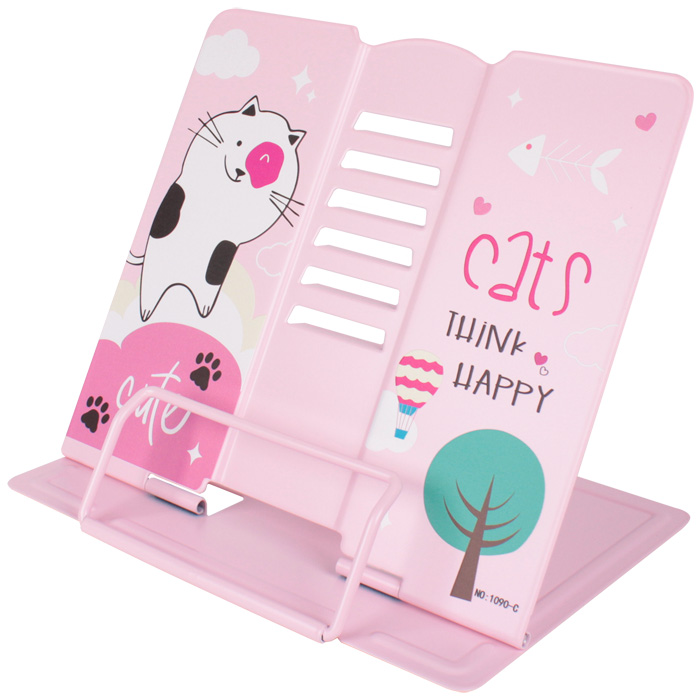 Раскладная подставка для учебников и тетрадей с ярким и привлекающим внимание дизайном, удобна и проста в использовании, прочная, корпус металлический.
