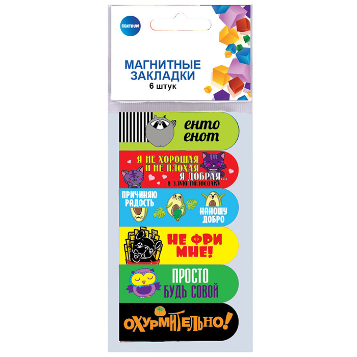 Магнитные закладки исключают возможность выпадения, а также не деформируют листы при скреплении.В наборе 6 закладок, различных по дизайну. Упаковка – европодвес.