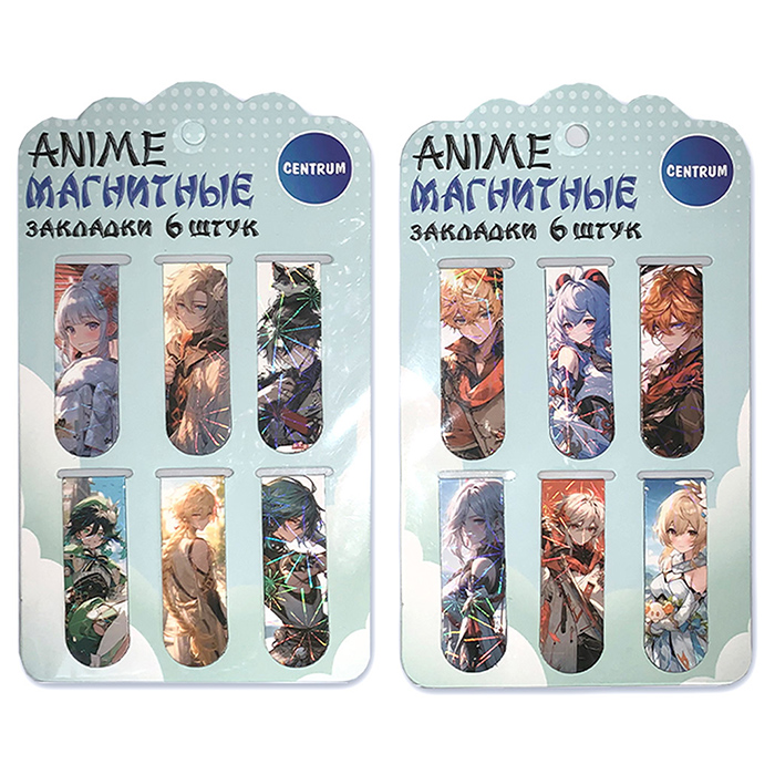 Магнитные закладки Centrum. Магнитные закладки представляют собой сложенный пополам мелованный картон с ламинированной голографической внешней поверхностью. На внутренней стороне расположены магнитные пластины, которые надежно скрепляют одну или несколько страниц. Небольшой размер и удобный формат позволяет крепить закладки на книги, журналы, отдельные листы с любой стороны. Магнитные закладки исключают возможность выпадения, а также не деформируют листы при скреплении. В наборе 6 закладок, различных по дизайну. Упаковка – картонная подложка с европодвесом.